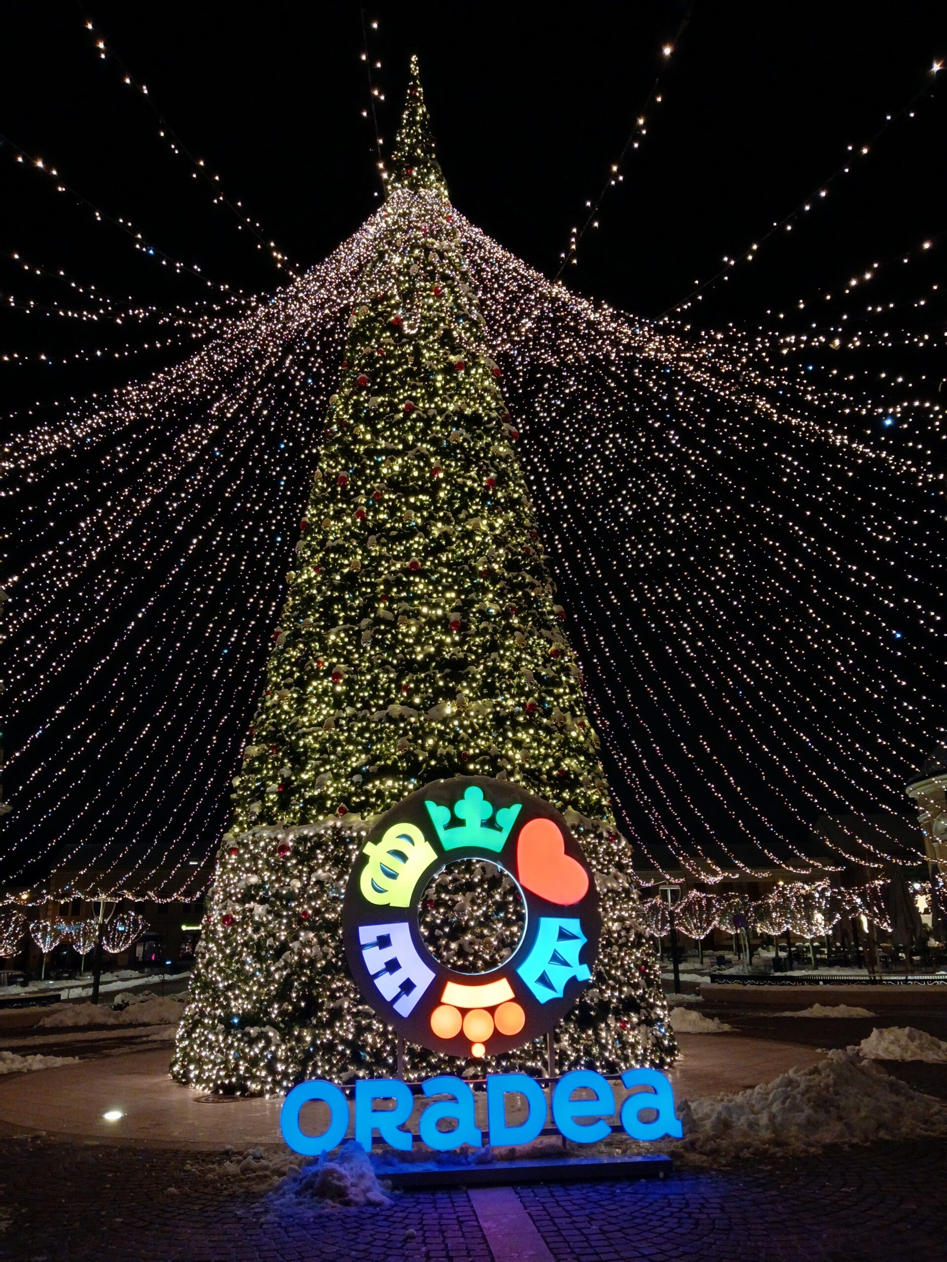 After crossing the border into Romania, we reached Oradea around 7pm, greeted by a city that looked as if December had decided to stay a little longer.